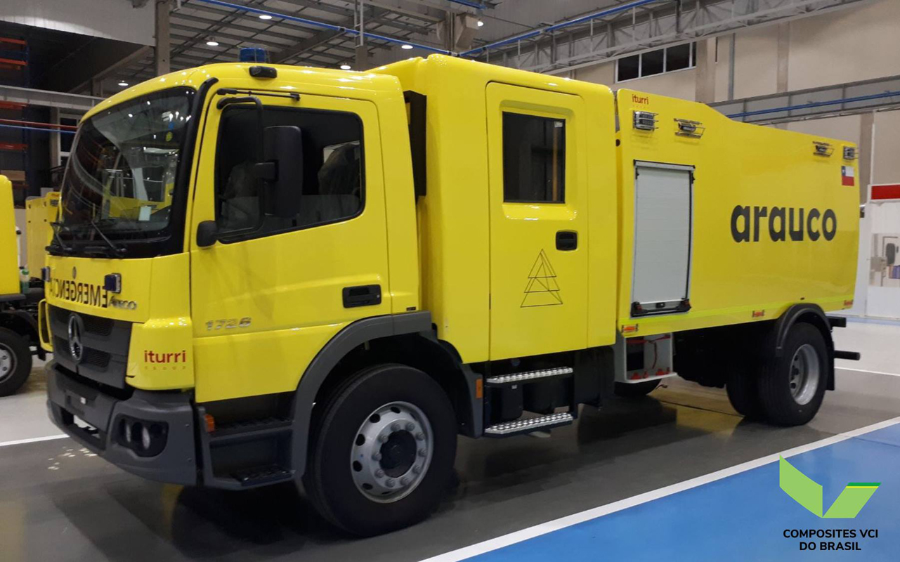 La division Composites VCI Do Brasil a produit et conçu des cabines de camions de pompiers pour le groupe Iturri.
